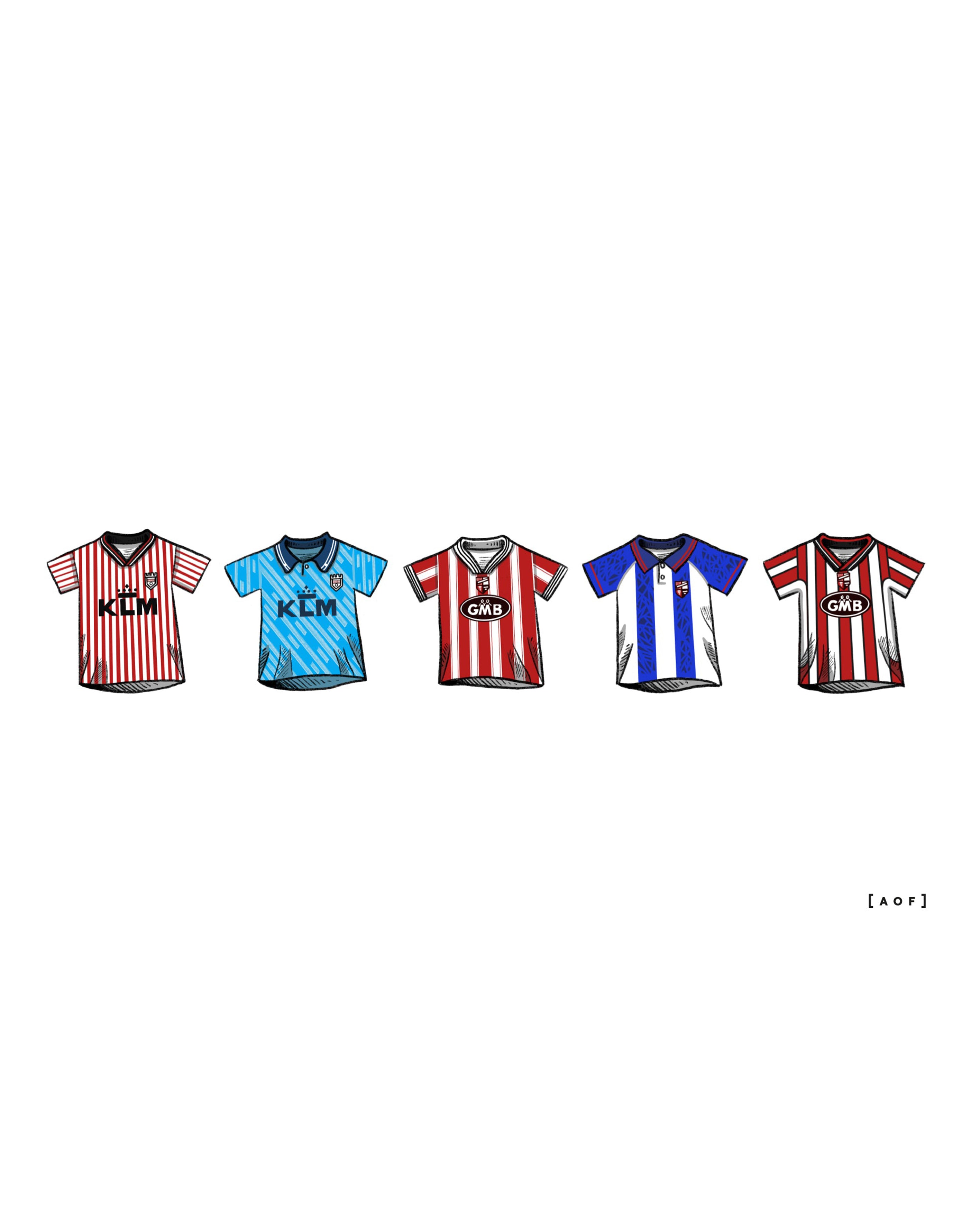 - Design: A collection of classic Brentford football shirts as requested by Bees fans.