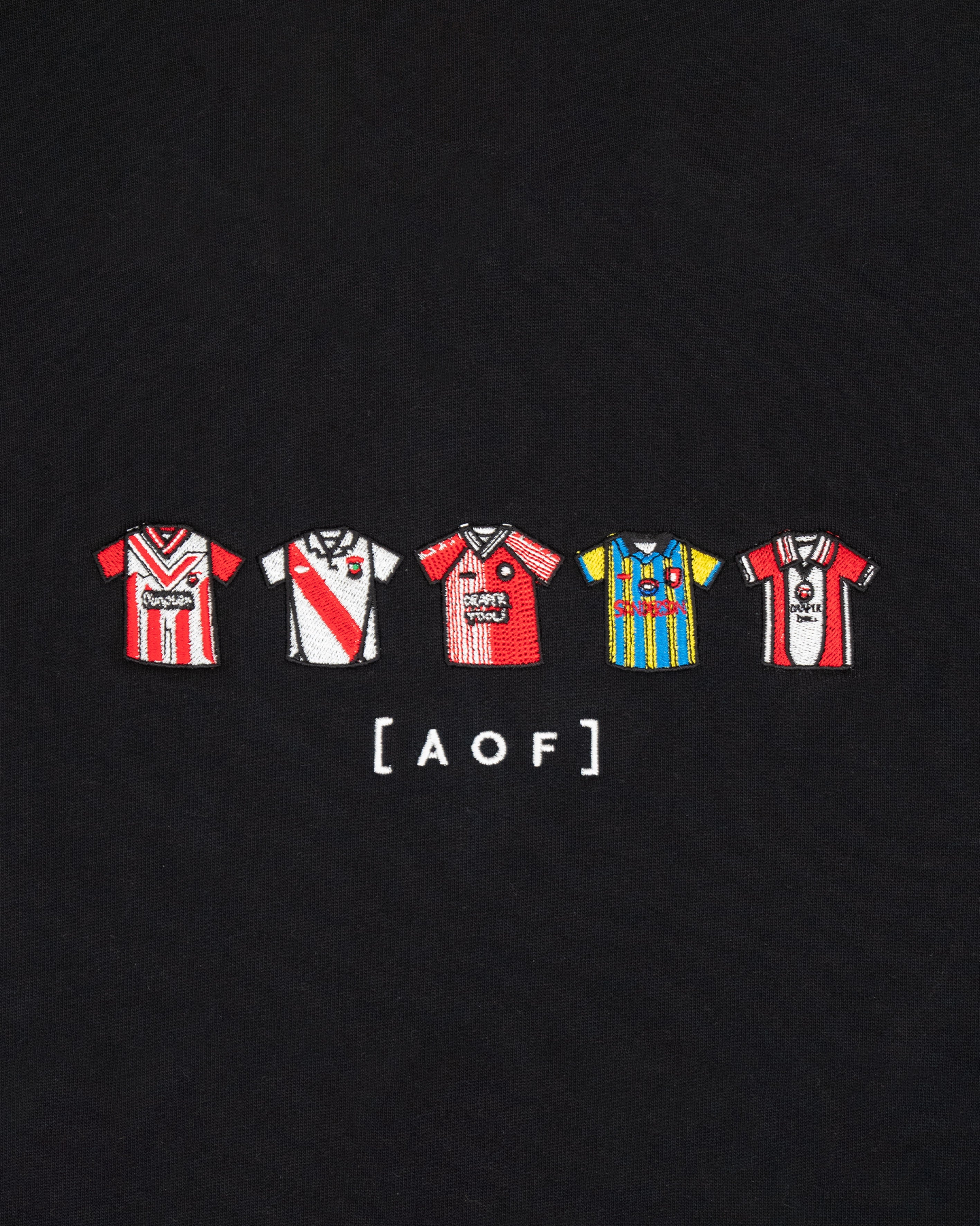 Graphic Design: A collection of classic football shirts. The fabric of football history. Over 25,000 stitches, 30 minutes of embroidery.