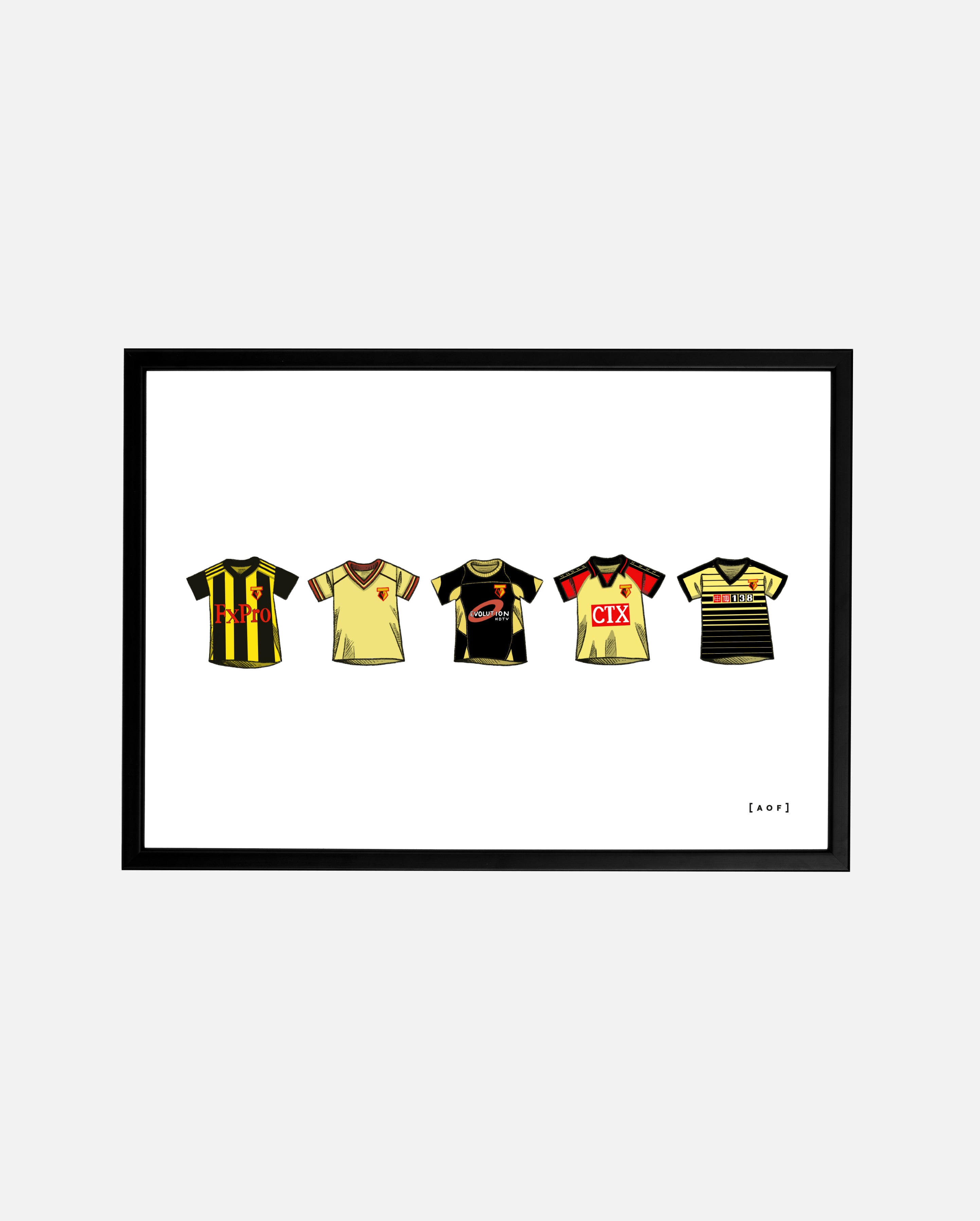 - Design: A collection of classic Watford football shirts as requested by Hornets fans.