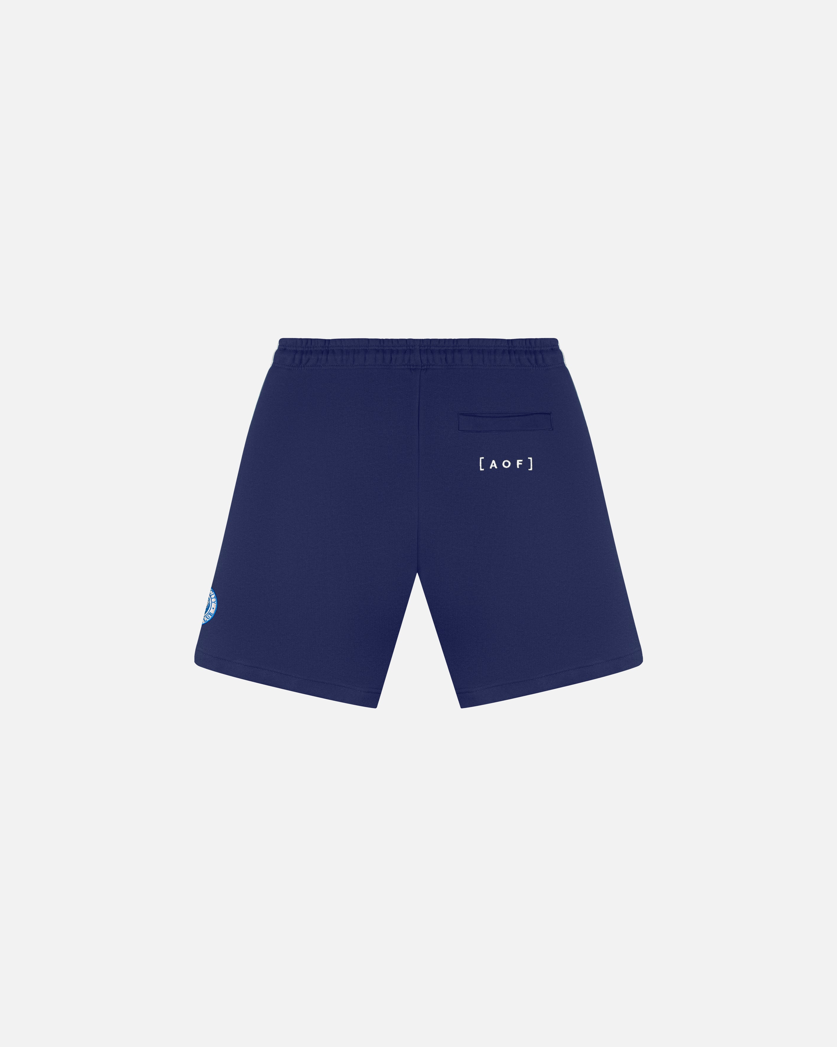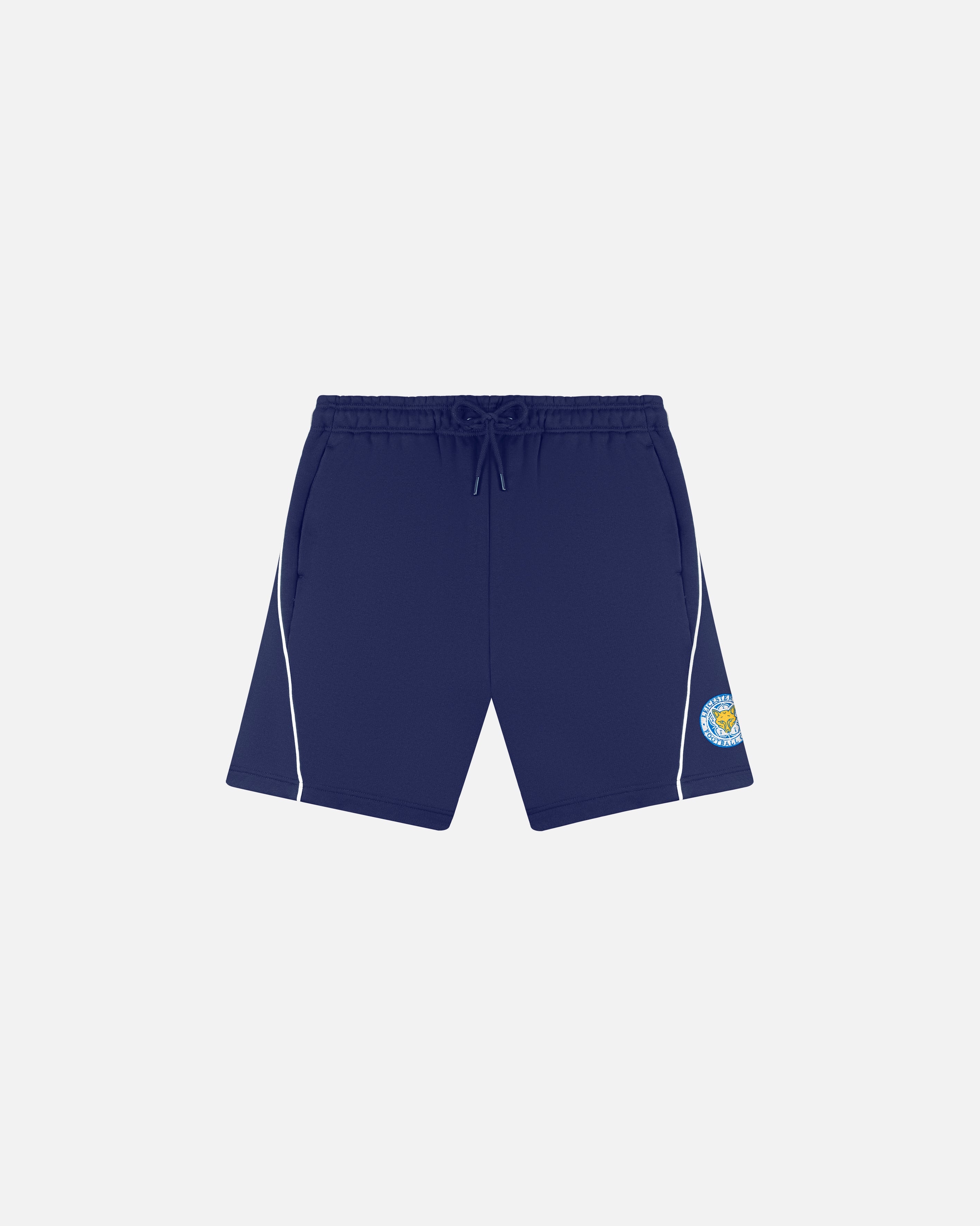 Navy sweat shorts with white piping and embroidered crest.  These relaxed fit shorts feature a straight leg, welt pockets and an elasticated drawstring waistband.